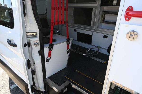2023 Transit T250 Leader Ambulance Type II for sale. Built by Leader Emergency Vehicles this Type 2 ? SE Transit Medium Roof has all the features you need for your EMS or van life dreams: 69? of headroom. The SE Transit Medium Roof is designed to maximize medic maneuverability while at the same time optimizing storage space. In good shape overall with some minor door dings and scratches. This vehicle has a huge list of features including: Ford 360 degree camera, full complement Whelen SurfaceMax LED warning and scene lights, Whelen LED aerodynamic light bar, Oxygen system, Aspirator, action wall area, flush mount panel and gauge, Action area control center with built in suction system, 110V & 12V Outlets and dual USB charging port, High Back Attendant Seat with IMMI Per4Max restraint for added safety and maneuverability, Squad bench has two (2) IMMI Per4Max restraints, Rear access horizontal folding stretcher storage with easy slide feature that minimizes unsafe lifting, and much more! The Ford Transit T250 chassis is loaded with features: 10way power heated seats, HID headlamps with wiper activated headlamps, front fog lamps, short arm power heated mirrors, cruise control, engine block heater (400W), dual batteries (70AMP-HR), 6 speakers, Sync 4 AM/FM Bluetooth, navigation, dual alternators, reverse sensing system, DualBatteries (70 AMP-HR), tires have 90% tread life left, Captains seat has a built in car seat, secondary rear AC unit and controls, tons of interior cabinets and latches with Plexiglas doors, drug safe, a multitude of medical equipment hookups, interior lighting and clock, hot Heat, cold AC, EcoBoost 3.5L twin turbo Ford motor with Rear Wheel Drive, and much more. This vehicle is offered for sale by Mobility Auto Group. With two Colorado locations at: 1500 W Campus Drive, Littleton CO 80120 & 2311 S Platte River Drive, Denver CO 80223. We don't charge a Dealer Handling Fee and are your mobility one-stop-shop. Just give us a call as we offer it all: sales, service, parts, and rentals. Open M-F 9am - 6pm. Sat by appt. Call (844) 289-2635.