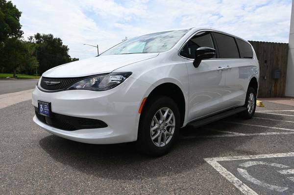 Door Opening Height: 56" and width: 34". New 2025 Chrysler Voyager LX FR Conversions Long Cut Manual Rear Entry Ramp van for sale. Up to 120-month finance available, WAC. Updated interior for 2025 including standard features: power dual slider doors, power tailgate, remote start system, heated front seats, and much more. Built by FR Conversions, this brand new, NMEDA approved disability equipped handicap wheelchair accessible ramp van conversion was designed with simple & easy to use in mind and put on a great new Voyager chassis. ADA compliant 56 inch height clearance rear entry, low maintenance durable no-skid ramp with counter balance struts, and long channel cut lowered floor and includes two fixed OEM Chrysler rear Mid-row passenger seats for a 4+1 or 2+2 wheelchair set up with a narrow mid-row wheelchair. Q'Straint wheelchair tie-down straps and floor rails are included throughout. This Voyager LX also comes packed with great features from Chrysler: beautiful White exterior, Black cloth interior, Alloy Wheels, new tires, running boards, 3-Zone Climate Control, larger LCD Touchscreen Display, AM/FM/CD/Satellite system with Bluetooth, AUX port, USB ports, power windows, mirrors, and locks, key-less remote, stability control, Front, side and overhead air bags. 4-wheel ABS system, tire inflator, smooth and efficient 3.6L 6-cylinder Chrysler motor with front wheel drive, and much more.?This vehicle is offered for sale by Mobility Auto Group. With two Colorado locations at: 1500 W Campus Drive, Littleton CO 80120 & 2311 S Platte River Drive, Denver CO 80223. We don't charge a Dealer Handling Fee and are your mobility one-stop-shop. Just give us a call as we offer it all: sales, service, parts, and rentals. Open M-F 9am - 6pm. Sat by appt. Call (844) 289-2635.