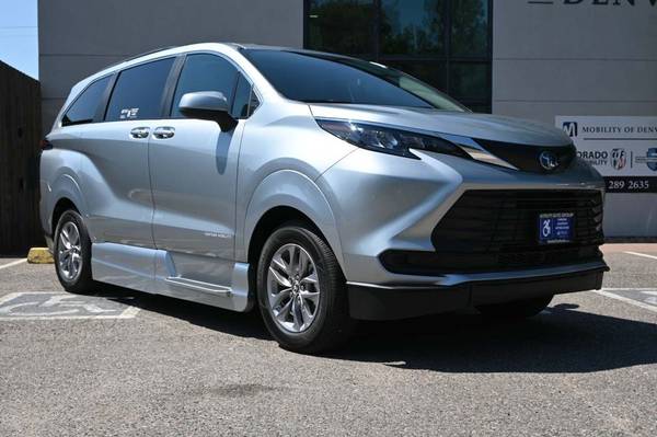 Door Opening Height: 56" and width: 30".?*Qualifies for a $1,000 Toyota Mobility Rebate. New 2025 Toyota Sienna LE VMI NorthStar Hybrid FWD Side Entry rampvan for sale. Up to 120-month finance available. Brand new VMI conversion on an all new 2025 Sienna chassis with full manufacturers warranty. VMI's exclusive features beat out the competition: most useable room, highest ground clearance, interchangeable removable front seats, Durafloor+ rubberized flooring, 1,000lb capacity ramp, and galvanneal coating undercarriage protection. The new 2025 Toyota Sienna features: bold new styling, tons of technology, Hybrid system and up to 36mpg Fuel Efficiency. LE Model, Silver Exterior, Gray cloth Interior, Toyota Safety Sense 2.0: Pre-Collision Sys w/ Pedestrian Detection, Full-Speed Range Dynamic Radar Cruise Control, Lane Departure Alert w/ Steering Assist, Lane Tracing Assist, Automatic High Beams, Road Sign Assist STAR Safety System LATCH-Lower Anchor & Tether for Children Blind Spot Monitor w/ RCTA 5-Door Smart Key w/ Push Button Start Safety & Remote Connect w/ 1-Year Trial, Audio Plus - 9-in Touchscreen, 8 Spkrs, HandsFree Bluetooth phone/Music, USB Media Port, 6 USB Charge Ports, SiriusXM w/ 3-Month All Access Trial, Android Auto & Apple CarPlay Compatible Four Zone Auto Climate Control, Heated & Power Front Seats, 60/40 One-Motion-Stow w/Split 3rd Row Seat Rear Seat Reminder, 2.5L 4-Cylinder Engine 245 Combined Net Horsepower Electronic Continuous Var. Tran. (ECVT) 17-in Alloy Wheels Electronic On-Demand Front-Wheel Drive, LED Headlights with Auto on/off feature Hands-Free Dual Power Sliding SideDoors Power Liftgate Frt & Rear Parking Assist w/ Auto Brake Power Tilt / Slide Moonroof. This vehicle is offered for sale by Mobility Auto Group. With two Colorado locations at: 1500 W Campus Drive, Littleton CO 80120 & 2311 S Platte River Drive, Denver CO 80223. We don't charge a Dealer Handling Fee and are your mobility one-stop-shop. Just give us a call as we offer it all: sales, service, parts, and rentals. Open M-F 9am - 6pm. Sat by appt. Call (844) 289-2635.