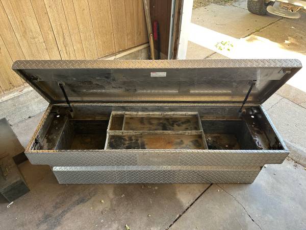 Nothing is wrong with the tool box, recently bought a gull wing box so that’s why I’m selling this one. It has 2 small holes on one side where a license plate was attached but that’s it. Mounting hardware isn’t included, I used J-bolts to anchor it in the bed of the pickup. Price is negotiable.
